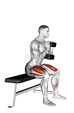 एक बार जब आप बॉक्स या बेंच पर बैठ जाएं तो डंबल को उसकी स्थिति में रखते हुए एक पल के लिए रुकें।